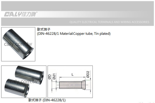 非絕緣端子, 端子, 銅管端子, 中接管, 歐式端子, 絕緣端子, 連接器, 開放型端子 Cord end terminals, wire ferrules, non insulated cord end terminals, non insulated wire ferrules